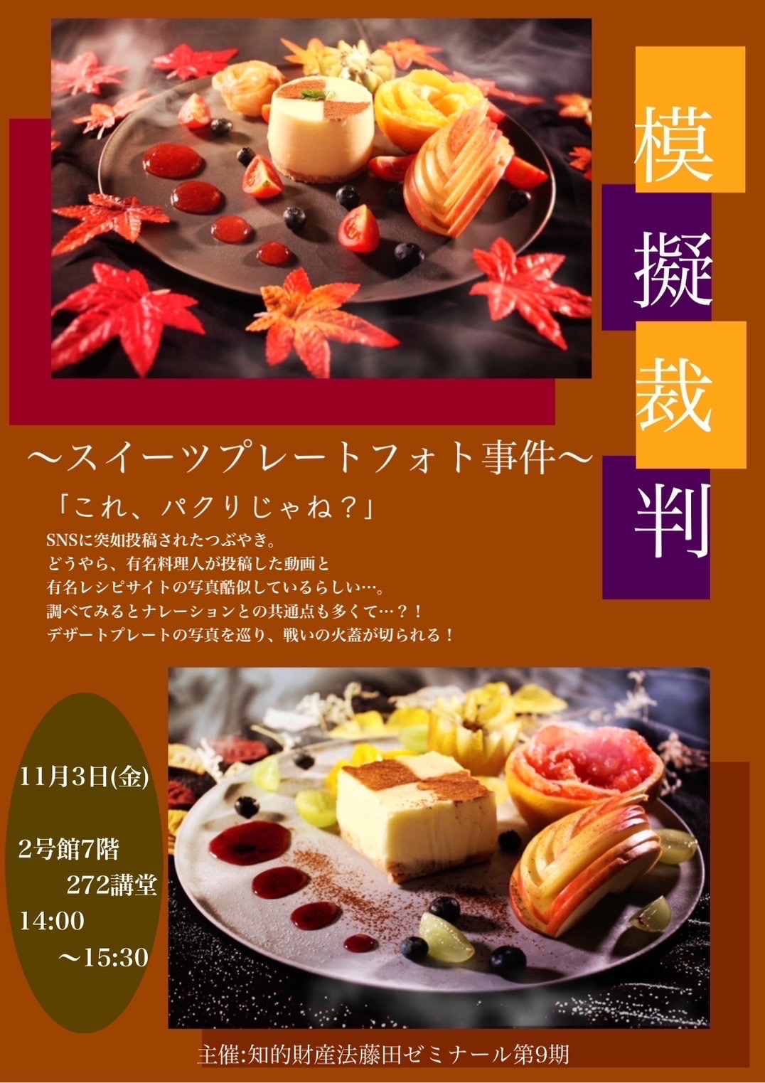 2023「模擬裁判・スイーツプレートフォト事件」の題材となった,料理系YouTuber東郷寿福さんのお料理動画です。もちろん,室員の皆さんの手作りオリジナル動画です♪